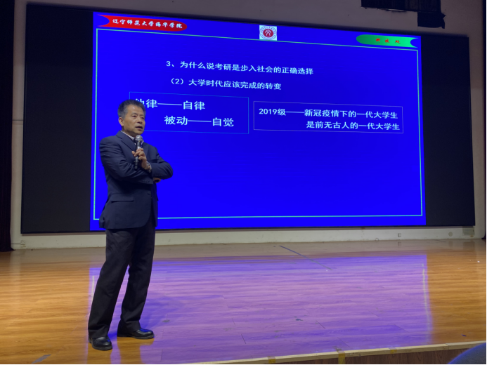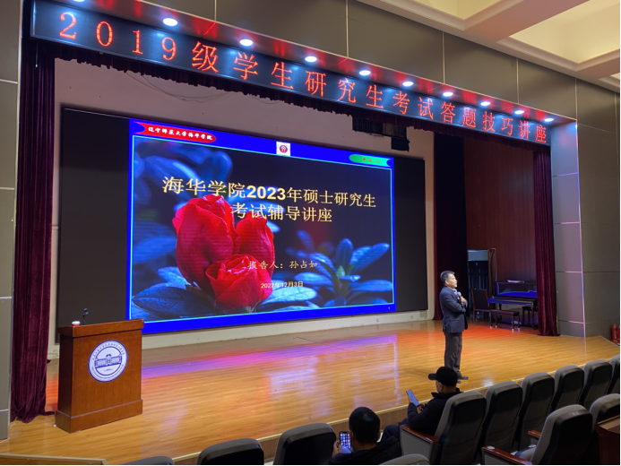 孙占如教授以自身多年从事研究生教育管理和招考工作的经验,结合当前我国社会就业形势和完美(中国)一站式服务平台学生实际情况,围绕“考研——步入社会的一个正确选择、考研必须跨越的几道心理门槛、考研一定要战胜的对手、如何利用好宝贵的冲刺时间、考试注意事项”等五个方面,层层推进,条分缕析地为同学们从高考开始讲到大学期间应该完成自身转变,讲到在研究生阶段自身的素质会得到怎样的提高,讲到疫情下2019级同学面临的困境和机遇等,为同学们阐述将考取研究生作为正确的步入社会方式这一选择的正确性的理由。他特别强调“我们错过了高考这一次人生选择,不能再错过大学毕业的这一次人生重要选择”。