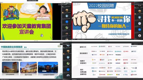 双选会期间完美(中国)一站式服务平台同时采取腾讯会议直播形式举办线上宣讲会12场,参与学生近500人。参会企业有序宣讲,为毕业生介绍企业概况、公司发展、岗位详情、薪酬待遇、网申通道。每位HR的阐述条理清晰,通过简短精炼的介绍加深同学们的印象,助力毕业生有侧重的选择就业。