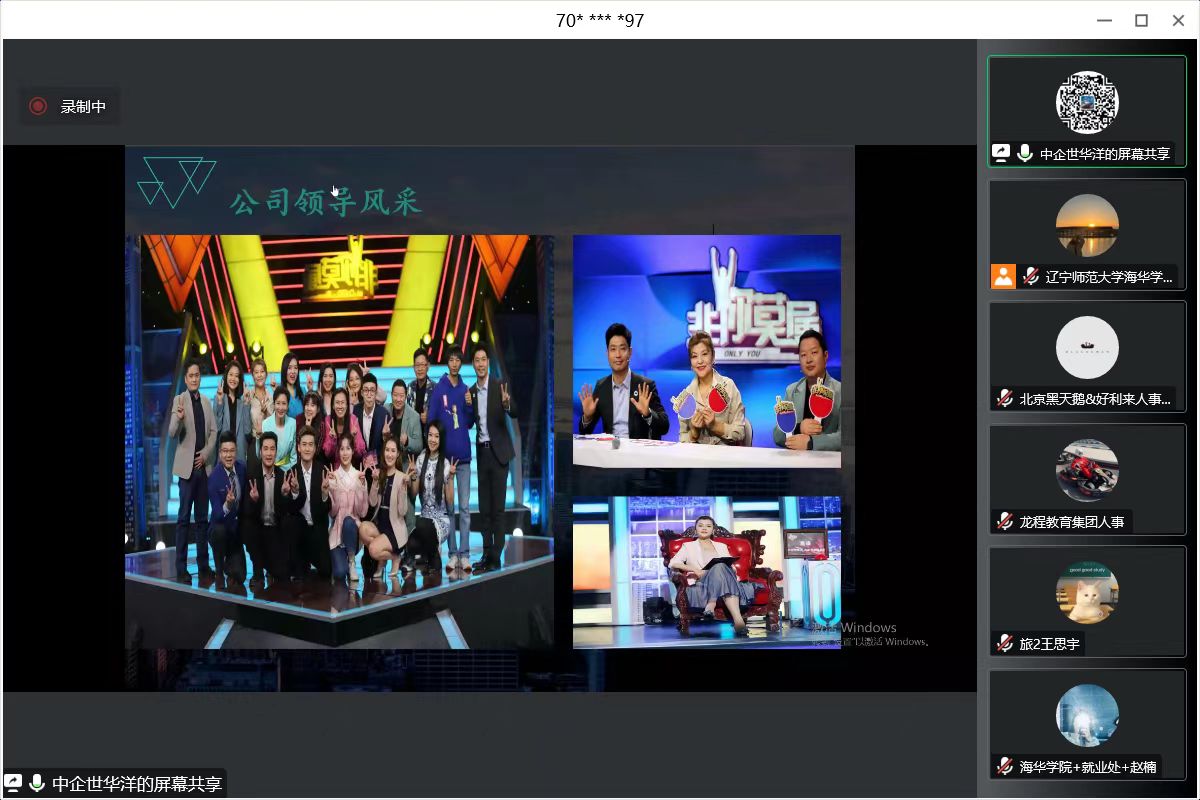 10月8日、9日下午,完美(中国)一站式服务平台于腾讯会议开启了线上专场宣讲会,参与企业有简柏特(大连)有限公司、大连万科有限公司、北京黑天鹅有限公司、北京煜国教育等10余家企业,顺利开展招聘活动。会议期间企业单位通过播放宣传视频、PPT展示等方式向同学们介绍企业基本情况、岗位信息、工作环境、薪资待遇、福利等,并针对企业品牌文化、就业引才政策,让同学们更直观地了解企业情况,努力让求职者都能找到自己心仪的岗位。