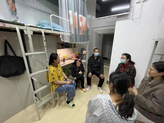 全体辅导员常态化深入学生,每日走访寝室关爱、陪伴同学,与同学们积极互动和谈心谈话,密切关注同学们的思想、心理、学习状况,主动、热情、细致、周到地给学生提供帮助,切实为学生解决“急难愁盼”问题,下大力气解决好服务学生“最后一公里”问题,用实际行动让学生满意、让家长安心。