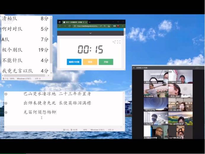 中文系举办“三行情书”创作大赛,有效丰富学生业余文化生活,提高学生文学水平、激发大家写作兴趣;组织开展以“增文化素养,品诗歌华彩”为主题的线上活动,让同学们放松身心,在比赛和欢乐中体会语言文字的神奇,古诗词句的美丽,感悟文化的壮阔绚丽。
