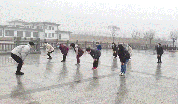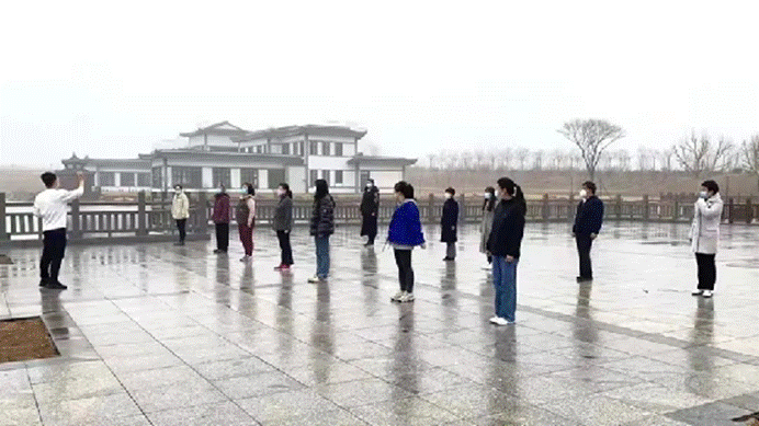 作为负责人,体育教研部曹茂发老师第一时间制订有氧健身操活动方案,全力做好带领小组成员跳有氧健身操准备。4月11日清晨,细雨绵绵,青雾蒙蒙,但这丝毫阻挡不了大家运动的热情,教师们跟着节奏做动作,热情洋溢,充满活力!