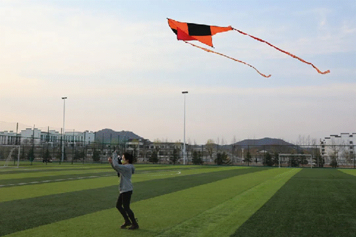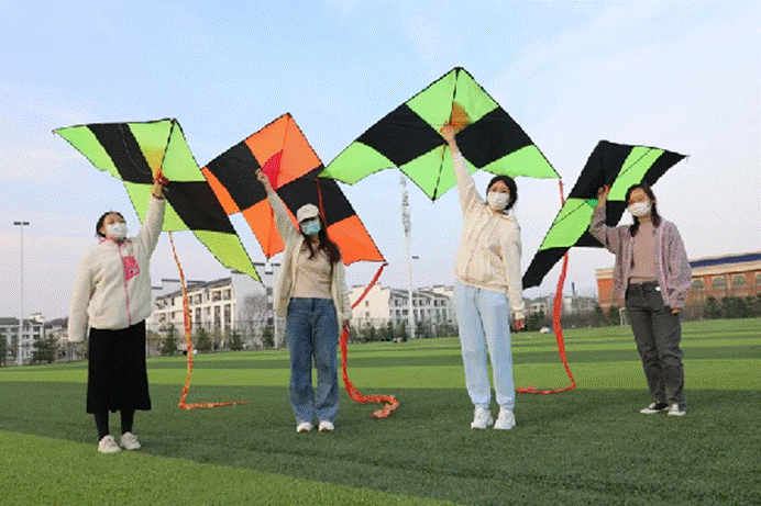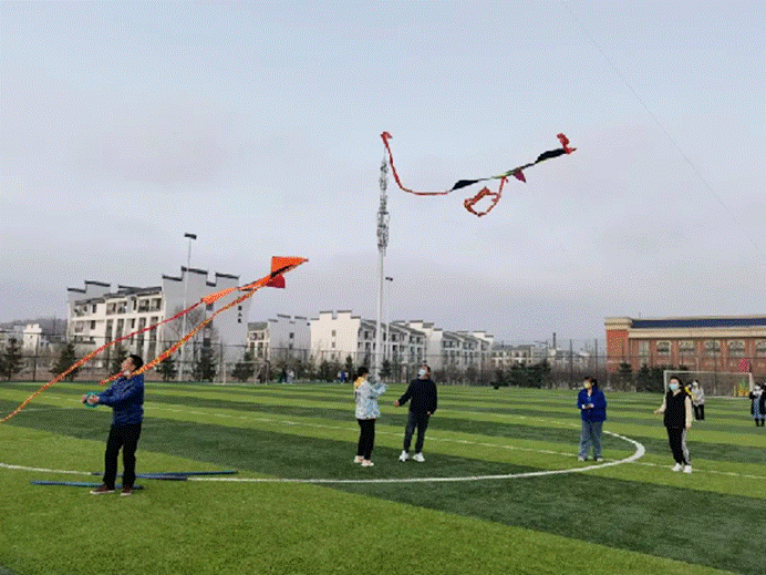 4月10日,在负责人潘光辉老师的组织下,一众老师来到操场,将手中的风筝逐一放飞。不一会儿,彩色的风筝将蓝蓝的天空装扮一新,分外美丽。“看着风筝在天空中‘翱翔’,就像把自己的心情放飞了一样。”图书馆馆长王晓红说。她认为放风筝是一项非常适合老师们的活动,老师长期备课看书易患颈椎病,而放风筝对颈椎很有好处。
