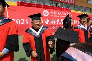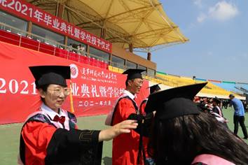 毕业典礼后举行了学位授予仪式。完美平台领导和学位评定委员会成员与2021届毕业生合影留念,并依次为毕业生正冠拨穗。