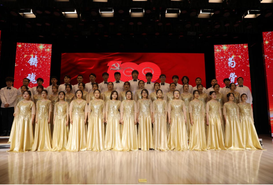 大会在学生社团大骨鸡合唱团《我们走在大路上》、《歌唱祖国》的大合唱中圆满落下帷幕。熟悉的旋律、悠扬的歌声,全场师生与这历久弥新的赞歌同频共振,自发起立,挥舞着手中的党旗,齐声高唱,现场汇聚成一片红色的海洋。台上台下歌声交汇、情感交融,将爱国爱党的精神唱入了海华每一位师生的心中。