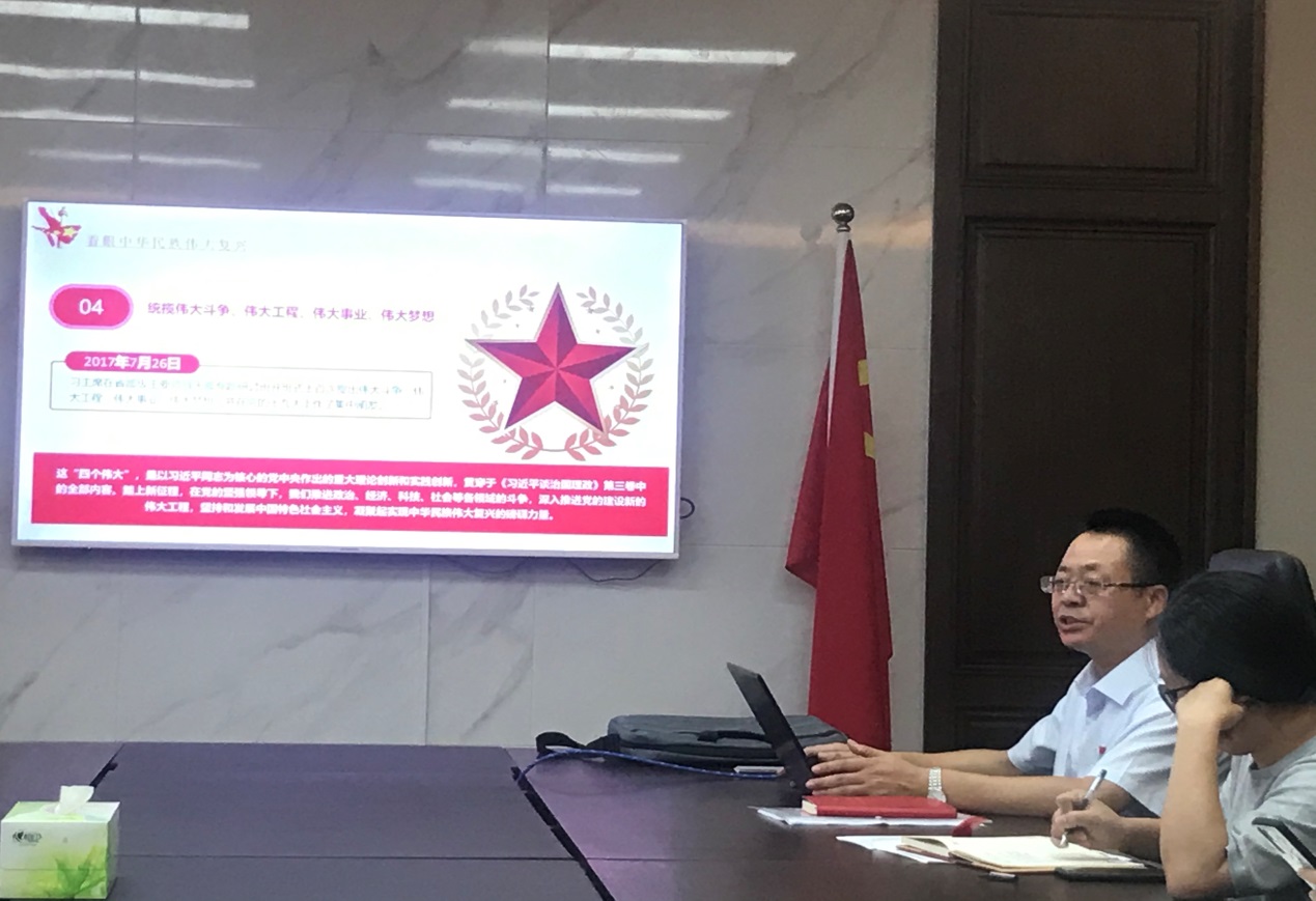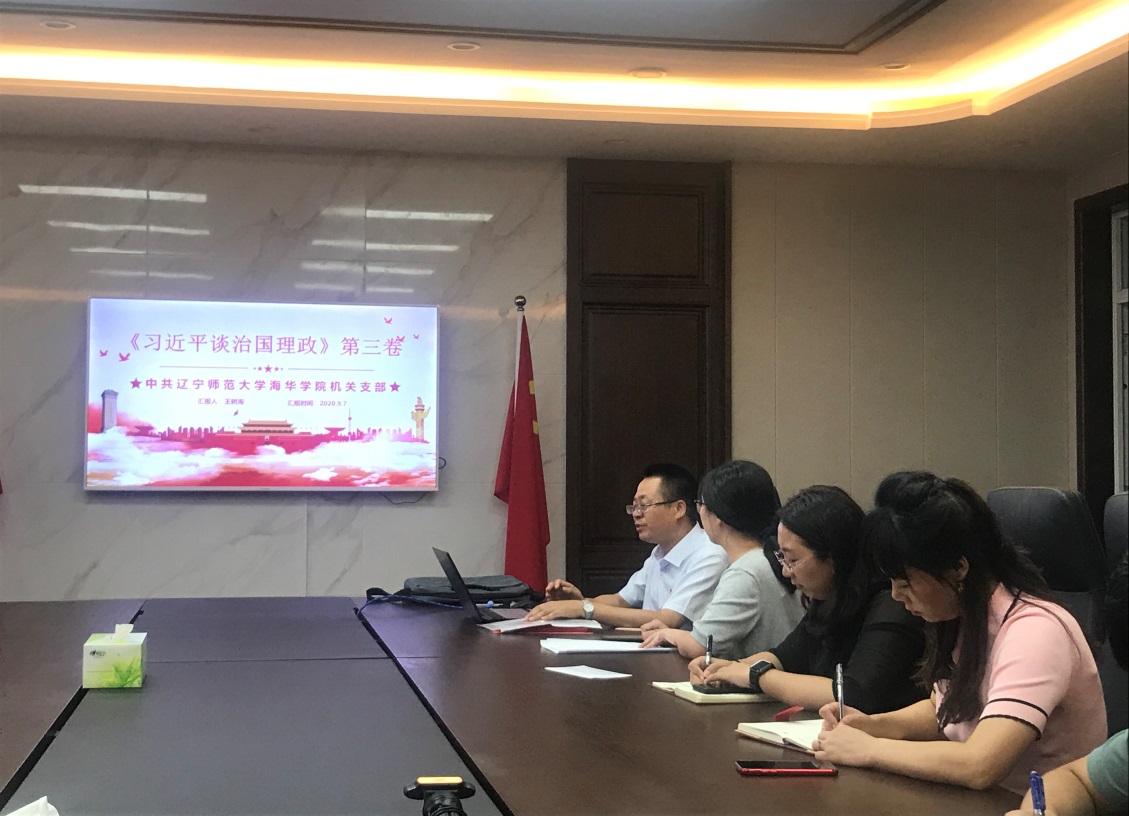 9月7日下午,完美平台机关党支部组织全体党员专题学习《习近平谈治国理政》第三卷。党支部书记王树海同志带领大家学习了有关内容。