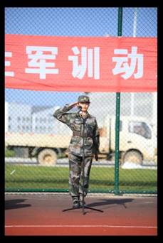 会议中,教官代表马书月上台发言,做出庄严承诺:必将遵循科学军训、严密组织的原则,耐心指导,牢固树立安全第一的观念,知行同训,以饱满的精神、昂扬的斗志共同开启最美的征程!