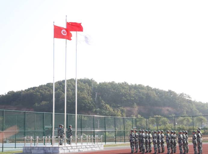 开学典礼在庄严的国歌声中拉开帷幕。新生军训团首先向领导和老师们汇报了军训成果,院长助理张猛检阅了新生军训团。在阅兵总指挥的口令下,新生方阵分别进行了分列式、擒敌拳和手语操的表演。他们斗志昂扬、口号响亮、队列整齐,挺拔的身姿、一致的动作,展示了良好的军人气质和风貌。