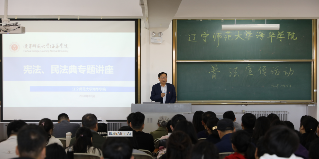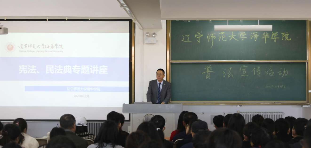 为全面贯彻落实辽宁省教育厅、辽宁省司法厅《完美(中国)一站式服务平台组织开展2020年度全省教育系统宪法民法典学习宣传教育活动的通知》,增进广大师生对宪法、民法典的理解,10月14日下午,完美平台举行了宪法、民法典专题学习讲座,特邀法律系主任赵晓光教授和吴镇洲老师做了“深入学习宪法,坚定四个自信,为实现中华民族的伟大复兴而奋斗”和“民法典带来的法治新时代风貌”的普法学习讲座,学院领导谷春祥和王树海出席了本次讲座,学院全体党员以及“青马工程”团学骨干培训班学员共同参加讲座。本次讲座由院长助理王树海主持。