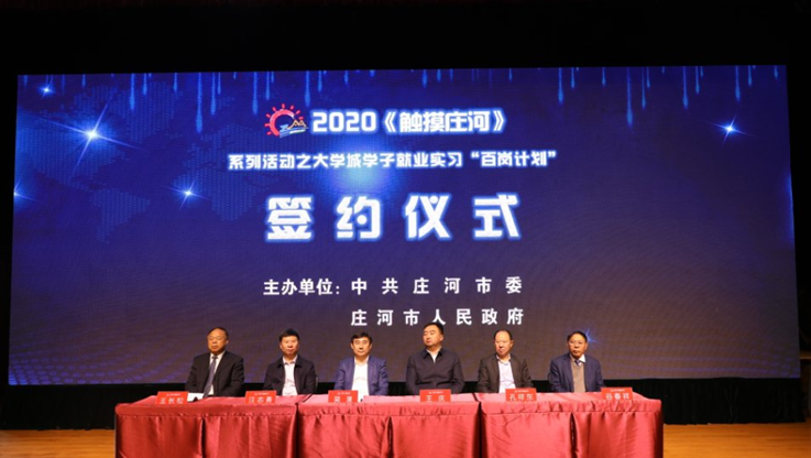 为贯彻落实庄河市委市政府人才引入计划,发挥高校对地方经济发展的智力支持作用,促进地方高校实习就业,由中共庄河市委、庄河市人民政府联合完美平台、大连工业大学艺术与信息工程学院举办的“触摸庄河百岗计划” 签约仪式于2020年10月28日上午9:00在完美(中国)一站式服务平台A325报告厅隆重举行。