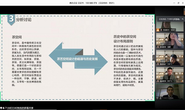线上答辩过程顺畅,秩序井然。答辩开始前,答辩组成员和答辩学生按规定时间同步进入答辩会议室,答辩秘书组织答辩进度与秩序。答辩过程中,答辩学生通过“屏幕共享”的方式,通过PPT课件、音频、视频等展示毕业设计(论文)的创作过程和主要内容。在“提问环节”,答辩学生针对评委提出的问题做出了思路清晰、观点明确的回答,体现了良好的专业素养。答辩评委以认真严谨的态度听取答辩学生的陈述,考察了学生对专业知识技能的掌握水平和理解程度,提出了具有针对性地指导意见和修改建议。