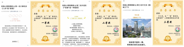 校团委心理健康协会面向全校学生开展“‘疫’路向前,云剧相伴”心理情景剧云征集活动,主题活动紧扣大学生心理健康问题,围绕大学生抗疫居家心理展开。本次活动通过线上云征集、云表彰的方式进行,参赛的视频通过云录制、隔空配合表演,并于录制后进行了展演和评选表彰。通过此次活动,进一步提升心理育人工作质量,缓解同学们在疫情期间由于各类问题而产生的心理压力,提高大学生的心理健康水平和心理健康素质。