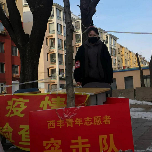 在疫情爆发的第一时刻,魏铭阳同学积极响应西丰团县委的号召,踊跃参加团县委组织的青年志愿者突击队。在志愿服务期间,她认真配合上级疫情防控工作安排,做好所属区域内人员信息排查登记,为居民普及防疫知识,凭借专业优势和文学素养成为疫情宣传重点工作的文案组成员,并组织参与志愿团队进行疫情期间的环保活动。她说:以大我胸怀发扬大爱精神,通过自己的行动为疫情防控贡献青春力量,是新时代青年学子应尽的责任和义务。