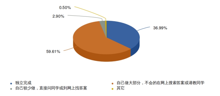 有96.6%的学生能够主动完成教师布置的线上作业,除独立完成外,还能够充分利用网络媒介,通过查询网络资源、同学资源共享等方式完成线上作业,突出了线上教学中资源共享优势,使学生所学知识的前沿性、延展性得到了保障。
