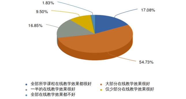 根据数据显示,有88.66%的学生认为大部分在线课程的教学效果良好,说明有效开展线上教学互动,加强师生课上、课下交流,完全可以充分发挥线上教学优势,达到超乎预期的教学目的,收获应有的教学效果。