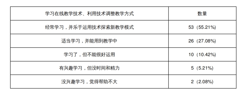 图表2 线上教学期间,教师学习在线教学技术、利用技术调整教学方式