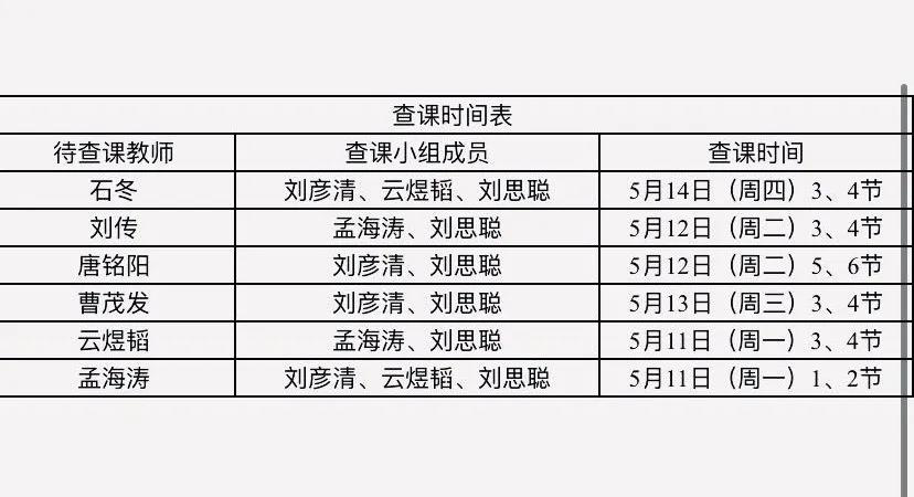 5月11日起,教学检查工作小组开始进行查课,每位教师都做到了保证线上教学质量不降低,对学生学习情况实时监控不放松。根据教学检查方案要求,检查小组人员对教师们提交的授课教案、课件等各项材料进行认真查阅,及时发现和总结线上教学期间各位教师在教学资料、教学思路的设计和应用上取得的成绩和存在的不足。