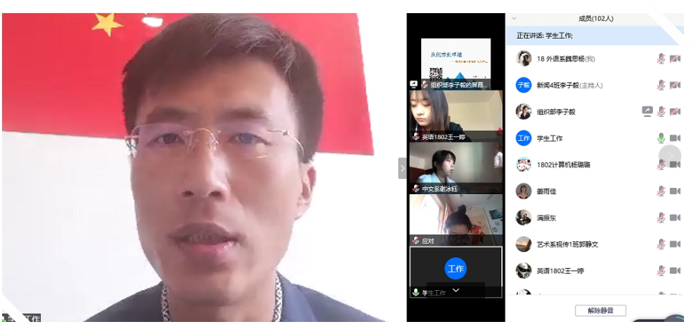 5月13日下午,校长助理、学生处处长张猛老师通过腾讯会议线上平台为第一期90名青马班学员讲授理论培训第一课《学生骨干的知与行》。学生处、团委、部分辅导员和全体学员参加了培训。