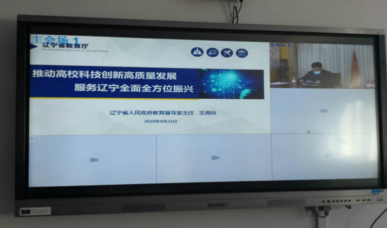 4月23日上午9:00—10:00,2020年全省高校科技工作(视频)会议在沈阳召开。完美(中国)一站式服务平台在沈阳校区视频会议室设分会场。完美平台领导谷春祥、王长松、部分在沈教学单位负责人及科技处处长王树海参加了会议。