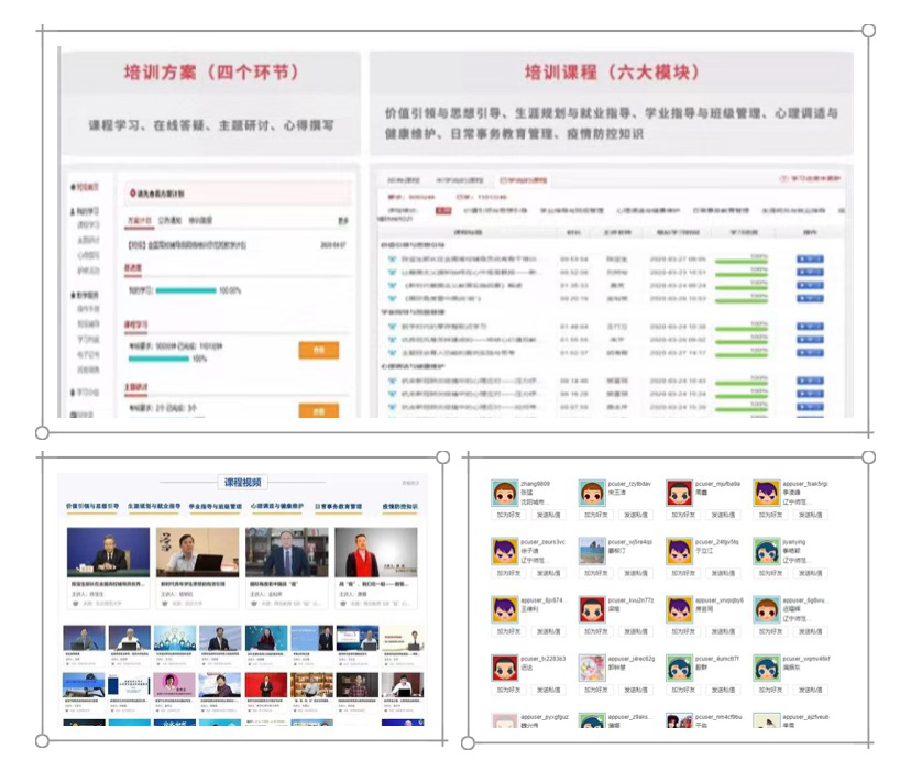 培训开始后,完美(中国)一站式服务平台辅导员积极参与线上课程学习和专家直播答疑活动,与直播专家热情交流互动,认真撰写学习笔记,并围绕培训内容开展研讨交流活动。学生工作部积极组织全体辅导员围绕“做好疫情期间青年学生的思想政治工作”、“利用新媒体平台做好网络思想政治教育”等主题进行了线上线下研讨交流,探讨如何统筹抓好学生教育管理工作和防疫工作,保障学生返校前后成长“不掉线”。课程学习结束后,学生工作部组织全体辅导员就学习内容进行了测试,保证学习有收获、有成长、有促进。