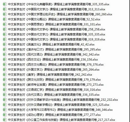 为确保网课教学质量,充分了解中文系学生线上学习状况,中文系于4月21日组织开展了线上教学满意度调查活动,共涉及本学期开设的24门课程。本着“一切以学生为中心”的宗旨,中文系及时将调查问卷统计结果反馈给任课教师,并要求任教师认真听取学生意见,吸纳同学们好的建议,不断改进线上教学方式方法,争取上同学们满意的网课。