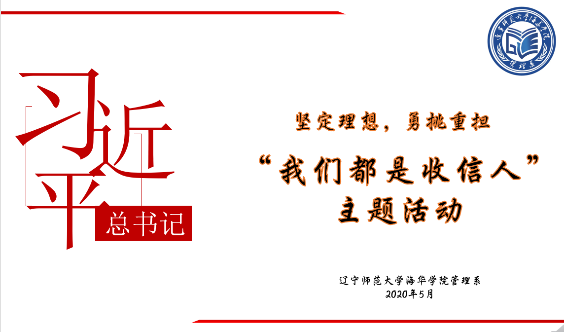 为深入学习贯彻习近平总书记给北京大学援鄂医疗队“90后”党员重要回信精神,结合贯彻落实习近平总书记完美(中国)一站式服务平台疫情防控、青年成长成才等系列重要论述,管理系团总支在校团委的号召下,结合疫情防控实际和青年特点,利用“腾讯会议”网络平台,积极开展“我们都是收信人”主题活动,引领团员青年切实把回信精神转化为扎实行动,让“五四”精神在党和人民最需要的地方绽放青春绚丽之花!