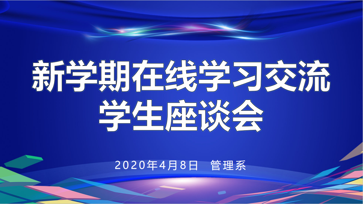 管理系为扎实推进在线教育教学工作,及时了解学生在线学习感受,提升在线教学效果和教学质量,于4月8日以“征求学生对线上教学的意见和对教师教学的意见”为主题,组织召开了“停课不停学”在线学习交流学生座谈会。管理系主任栾美晨教授、相关教师及全体学习委员、部分学生代表参加本次座谈会。