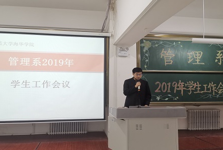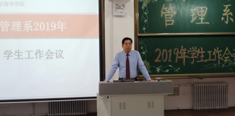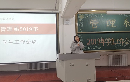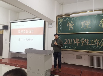 为进一步做好我系学生管理工作,提高学生管理工作的能力和水平,交流经验,相互学习,促进学风建设工作的开展,我系于2019年12月5日在教学楼A223召开了2019年管理系学生工作会议,会议由管理系副主任朱爱辉副教授主持,管理系主任栾美晨教授出席了会议。管理系全体教师、全体学生干部以及各班班委和学生代表参加了会议。