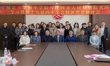 2019年11月27日下午,庄河市人民检察院副检察长赵强、侦查监督科科长林晶、案管中心副科长随清淼等同志光临我院,与我院法律系和思政部教师就学习贯彻党的十九届四中全会精神进行研讨。完美平台党总支书记、院长谷春祥、副院长田焱、法律系主任赵晓光、思政部主任刘彦清和实习就业指导中心潘光辉老师以及法律系、思政部全体教师代表参加了研讨会。