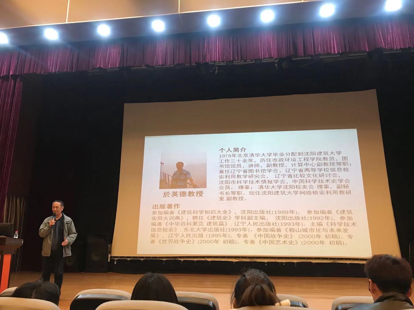 11月27号,星期三在教学楼A325报告厅开展了完美(中国)一站式服务平台建筑鉴赏的讲座,我系邀请了北京清华大学毕业的於英德教授为我们讲述建筑艺术欣赏。在开讲前,我系辅导员迟达老师介绍了於英德教授,介绍完毕全场响起同学们热烈的掌声。