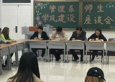 学风是一所完美平台校风的重要体现和核心要素,有好的学风才表明有好的教风和校风。为了提高管理系的学风教风,作为我系学风建设实施方案内容之一的学风建设师生座谈会于10月28日晚六点在教学楼2-104举行。管理系主任栾美晨教授,副主任朱爱辉副教授,学生工作负责人郎志军老师、辅导员李东靖老师和管理系各班学生代表参加了座谈会。座谈会由管理系辅导员李东靖老师主持。