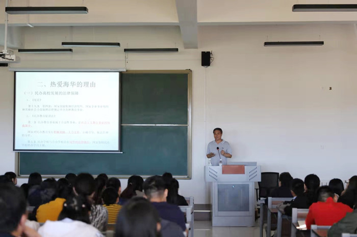 在开班仪式上,我院法律系赵晓光教授为大家做了一场题为《选择海华、热爱海华、发展海华——海华学院与我们的人生规划》的报告,赵教授在报告中从社会发展变化的客观现实出发,以有关的法律、政策为依据,紧密结合我们海华学院和年轻教职工的实际情况,深入浅出地回答了大家普遍思考和关心的几个问题。他认为大家选择海华具有主客观的必然性,是立足现实,基于理性,双向选择的结果。海华是一所值得大家信赖、托付和长期相伴的高校。年轻教职工与海华是一个命运共同体,要在海华的发展中提高自我,在自我的完善中发展海华。在座的新教职工深受教育和启发。