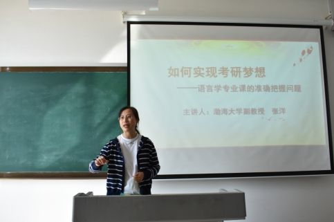 张洋教授的讲座题目是《如何实现考研梦想——语言学专业课的准确把握问题》。她首先从语言及应用语言学的重要意义谈起,从当前语言生活的实际出发,列举学生身边随处可见的语言现象,运用语言学理论和知识进行分析,让学生认识到语言学理论的趣味性,激发同学们学习语言学理论的兴趣,引导同学们在生活中多多关注新的好的语言现象,增强学习的信心。并用生动、形象的语言向同学们阐述教材版本及语言学概论重点的把握问题,指导学生处理好考研学习中报考完美平台和教材的关系,如何把握好重点的技巧和方法,如何提高学习效率等。