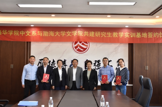 2019年9月21日上午,渤海大学文学院与海华学院中文系的院系合作共建举行签约挂牌仪式。签约仪式后,我院向渤海大学文学院刘广远教授、宋巍副教授、张洋副教授颁发客座教授聘书。9:30,刘广远、宋巍、张洋三位客座教授分别在104、108、205教室与中文系师生举行学术交流活动。
