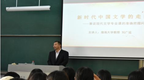 刘广远教授的讲座题目是《新时代中国文学的走向——兼谈现代文学专业课的准确把握问题》。他将新文学的发展方向概况为“小众而久远,边缘而丰富,时代且多样”。在与中文系17、18级同学谈到报考现代文学专业方向如何准确把握重点时说,一定“现代到当代,一线连古今,注重课后训练,注重作家作品,运用思维导图,注意简化记忆”。