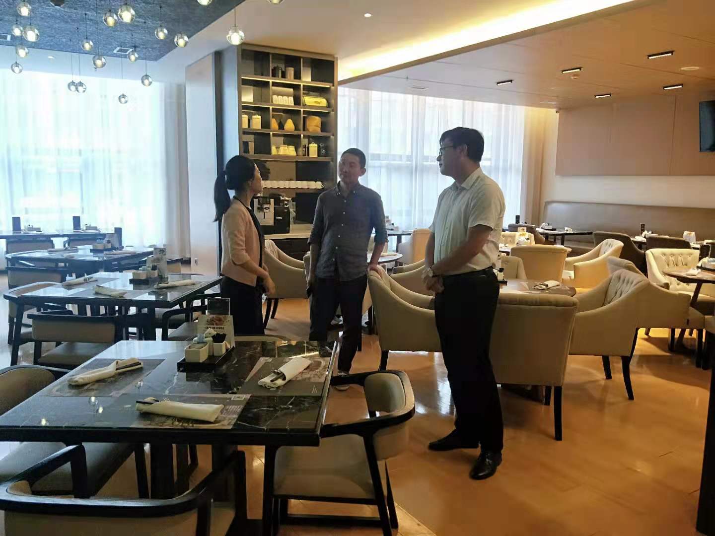为深化校外实践基地建设,深入了解我院学生实习情况和企业对我院人才培养质量的建议,拓宽校外就业实习平台,经学院同意,实习就业指导中心负责人潘光辉带领部门老师与管理系副主任朱爱辉赴沈阳太阳狮万丽酒店看望慰问2019级实习的学生们,受到了沈阳太阳狮万丽酒店人力资源总经理陈阳的热情招待。