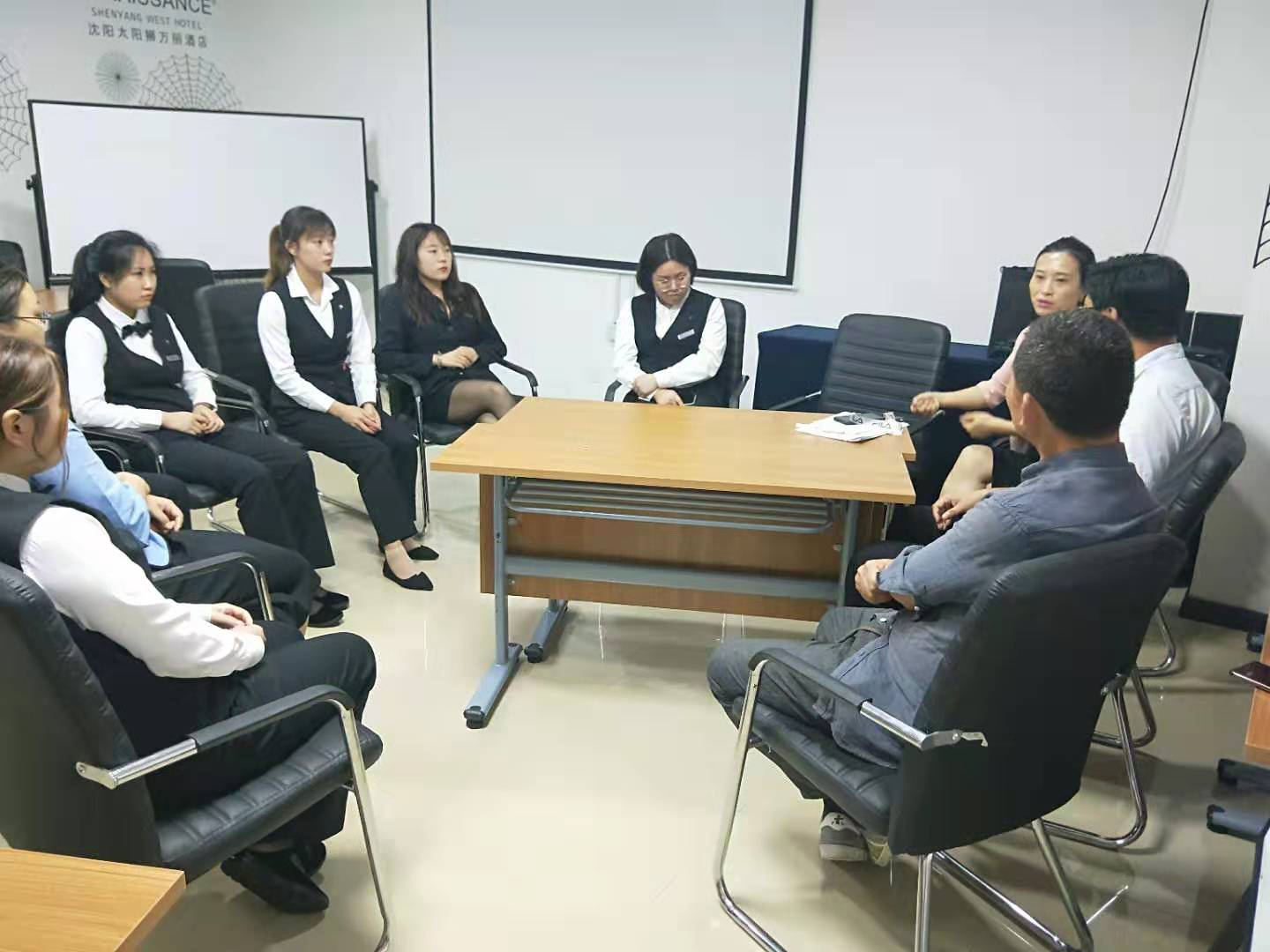 在随后召开的座谈会上,老师们对酒店为我院学生们提供实习机会以及在学生实习期间给予的关心和帮助表达了由衷的感谢,并向酒店方咨询工作人员中实习生所占比例、实习生留任率、部门分配等相关问题。酒店方热情地做出了相应的回答,同时肯定了同学们的实习工作表现,真切的希望学生实习结束后能考虑进入企业成为正式员工,并与老师们探讨对优化人才培养方案、改进教学方法、开设相关课程以及实操技能方面可做改进的方向,以达到实习、就业无缝对接。