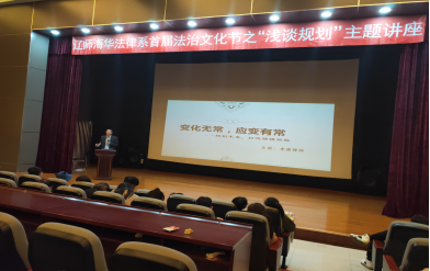随后,李强律师以《变化无常,应变有常——规划未来,打造锦绣前程》为主题,向法律系各位学子们讲述到学子们应当如何联系时代,规划成长,又如何通过合理规划实现自我发展,打造锦绣前程。