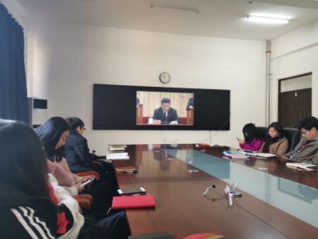 “艰难困苦,玉汝于成”。习近平总书记对于我国改革开放40年来实现的伟大历史成就作出了准确、翔实、凝练的分析和总结,在现有的历史经验基础上,不断丰富和发展。凝聚伟大民族精神,秉承变革和开放精神,昂首阔步走向新的时代征程。在场师生认真聆听习近平总书记在大会上的重要讲话,努力将讲话精神贯彻到工作中。