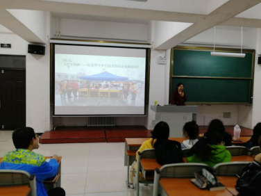 思政部刘月洁老师以专业、清晰、幽默的语言给学生进行了一次精彩的讲解。此次思政类社会实践培训主要就“我们要参加什么”、“在参加的过程中我们会经历什么”、“在参加的过程中我们会收获什么”以及“我们接下来要做什么”四大部分对学生进行有针对性的培训。本次培训会旨在建立我院青年大学生接触、发现和思考当前中国社会现实的渠道,营造探讨社会问题的环境和氛围,促进我院大学生自我教育和自我成长,提高社会创新意识与能力。