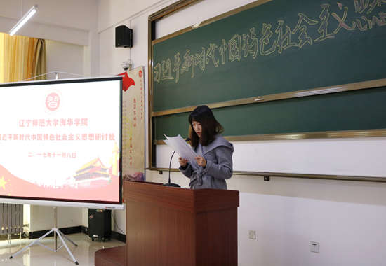 随后,金景贵提出了研讨社更名后的主要任务。首先,社员们要更加深入学习习近平新时代中国特色社会主义思想。其次,社员们要不断地创造学习研讨的新方法、新方式。再次,要不断地创造争取,研发新的研究成果。最后,指导教师们应该支持和引导各系研讨小组的学习研讨活动。中国各地都在学习党的十九大精神,海华学院的学生也要努力学习新时代的思想精神,为自己的成长发展做出良好的思想精神培养。