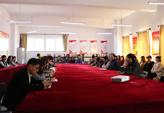 为了全面学习贯彻党的十九大精神,坚持以习近平新时代中国特色社会主义思想为指引,为进一步加强对同学们思想的引领,我院习近平系列重要讲话学习研讨社更名仪式于11月8日下午在121教室举行。出席本次活动的有副院长金景贵、学生工作部部长李鲁宁、团委书记王新、各系团总支书记及习近平研讨社全部成员。