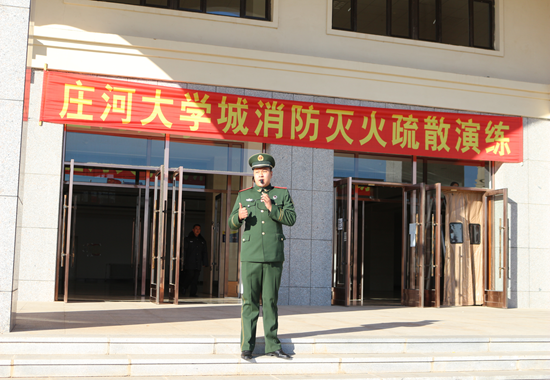 下午三点,大学城“119”灭火疏散演习活动暨2017年校园“119”消防宣传月活动启动仪式正式开始。庄河市消防大队领导致开幕词,我院吴院长发表讲话。吴院长强调全体师生要充分认识火灾的严重危害性,珍惜这次学习机会,学会避灾自救的本领,校园消防安全工作要抓重点、补短板、强弱项、再接再厉,再上新台阶。