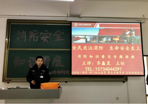 讲座中,齐主任以图文与案例讲解相结合的方式生动地讲述了各种情况下的火灾现场以及灭火方法和逃生的基本原则,并就家庭及单位消防知识、燃气安全使用、炒菜锅燃油起火和初期火情处置,以及消防设备储备、灭火器的使用方法、发生火情后如何进行逃生自救等方面为大家进行了生动讲解。一例例触目惊心的惨烈的案例,无论是我们身边的大悦城起火还是锦州夜市的爆炸,留给我们的不应该只是对死难者的沉痛哀悼,更重要的要把消防安全意识提高到一定高度,懂得单位和个人的基本消防义务和自救方法,火灾基本知识以及火灾逃生技能,对于那些在日常工作中被忽视、被麻痹的消防安全习惯,不要抱有侥幸心理,要时刻认识到的消防安全的重要性。