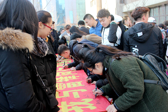 3月5日雷锋日当天,院学生会在学雷锋活动的热潮下,组织清理图书馆, 3月6日早晨七点在教学楼门前拉起了“我与雷锋同行,共建和谐新院”的条幅,举行志愿者签字活动。学院领导老师及学生干部有效的发挥了模范带头作用,全院学生积极参与,场面气势如虹。一个小时之内,已经有数百人参与签字活动,加入到学雷锋做好事的行列,让雷锋精神成为校园文化的主流,在校园扎根。