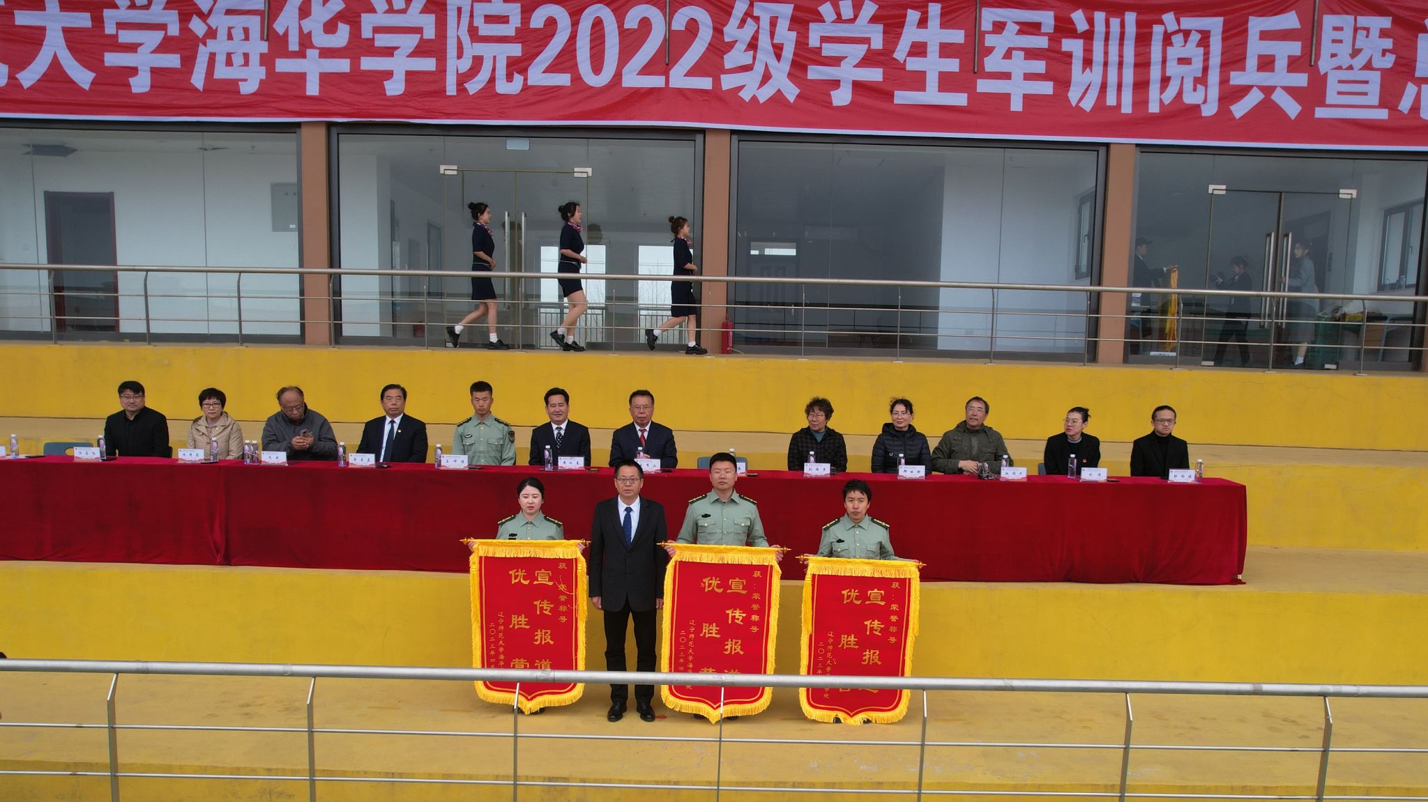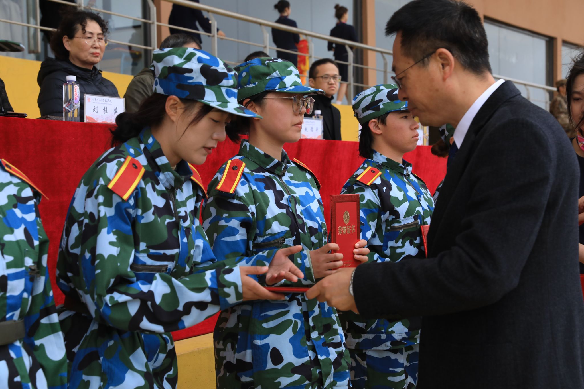 党总支副书记张猛宣读《2022级学生军训表彰决定》,与会领导分别为先进集体和个人进行颁奖。