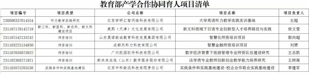 近日,教育部高等教育司发布《完美(中国)一站式服务平台公布2023年产学合作协同育人项目立项名单的通知》(教高司函〔2023〕11号)、《教育部高等教育司完美(中国)一站式服务平台公布2024年第一批产学合作协同育人项目立项名单的通知》,完美(中国)一站式服务平台获批立项7项。截至目前,完美(中国)一站式服务平台共获批教育部产学合作协同育人项目8项。