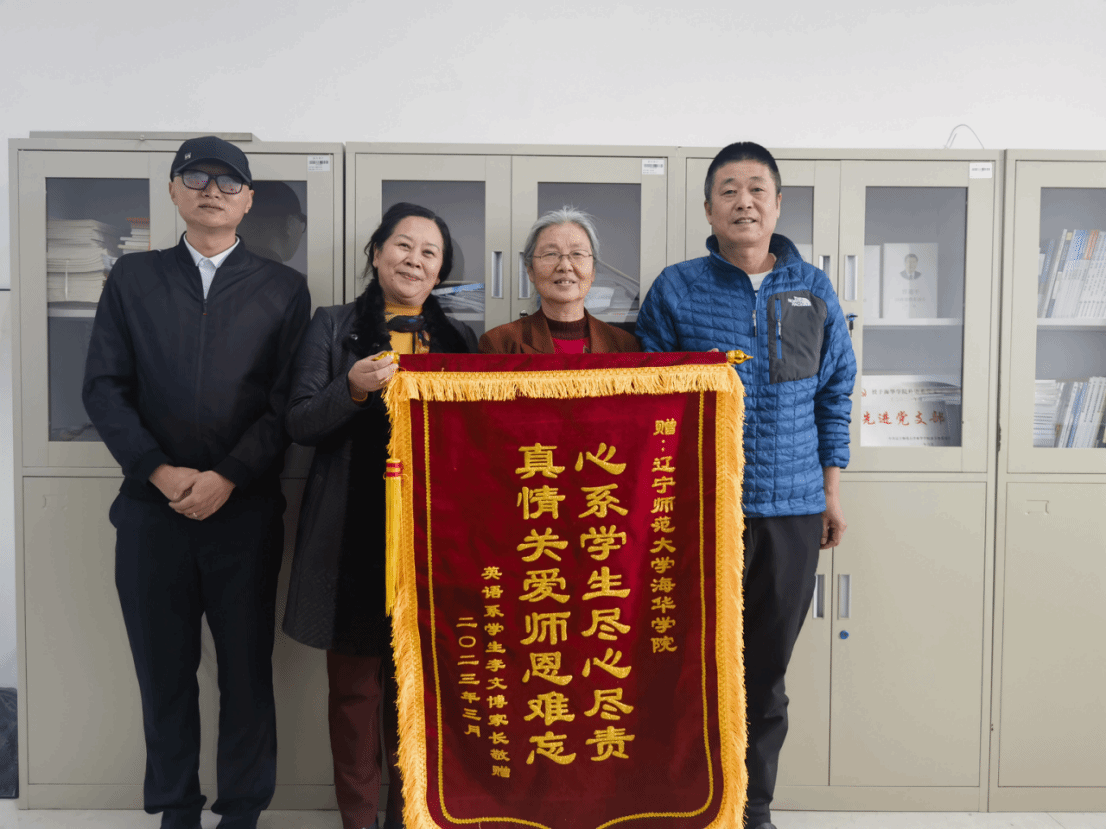 2023年3月14日,外语系2021届毕业生李文博家长来到完美平台,向外语系赠送写有“心系学生尽心尽责,真情关爱师恩难忘”的锦旗和感谢信,表达对外语系的感谢。