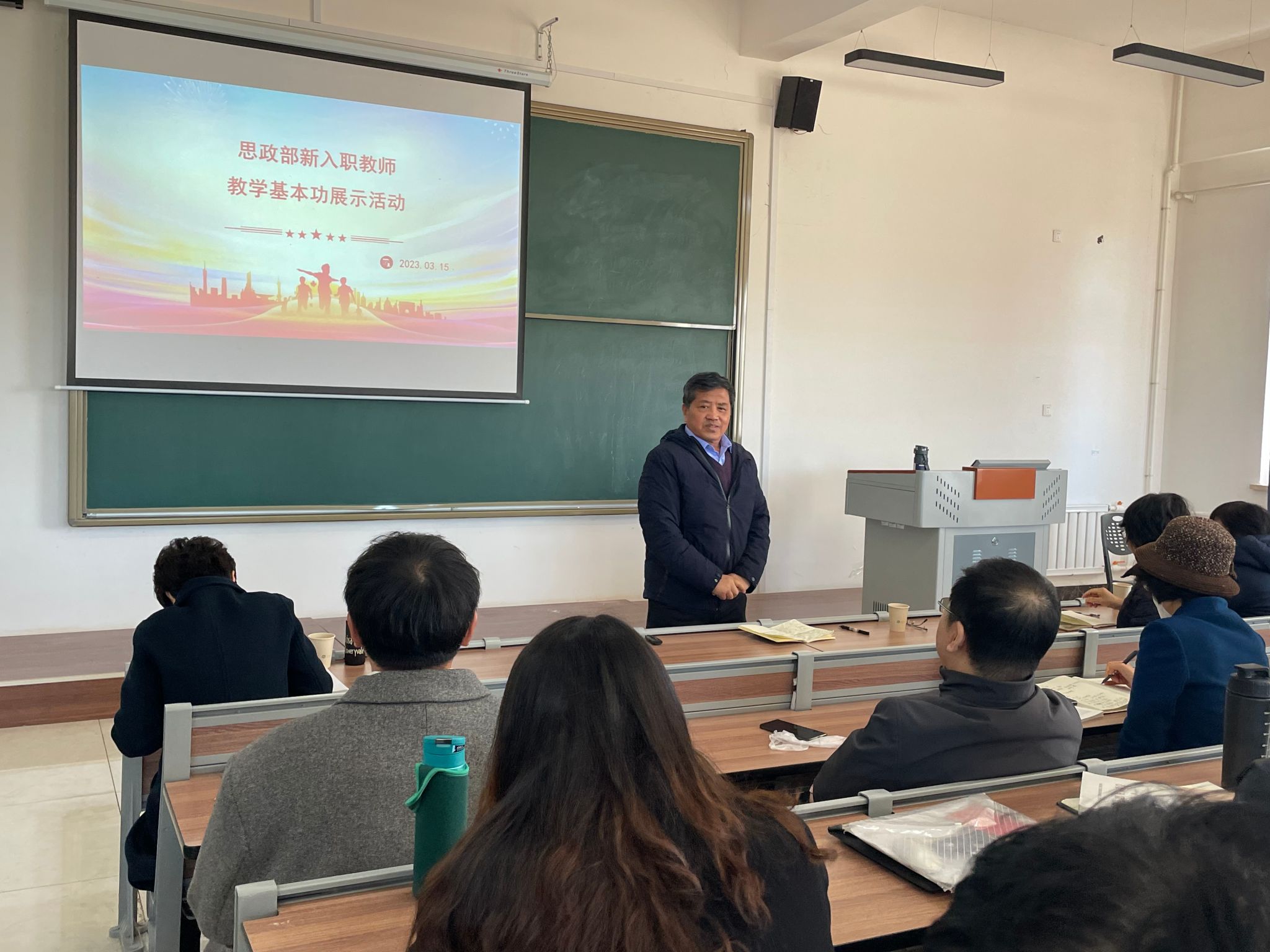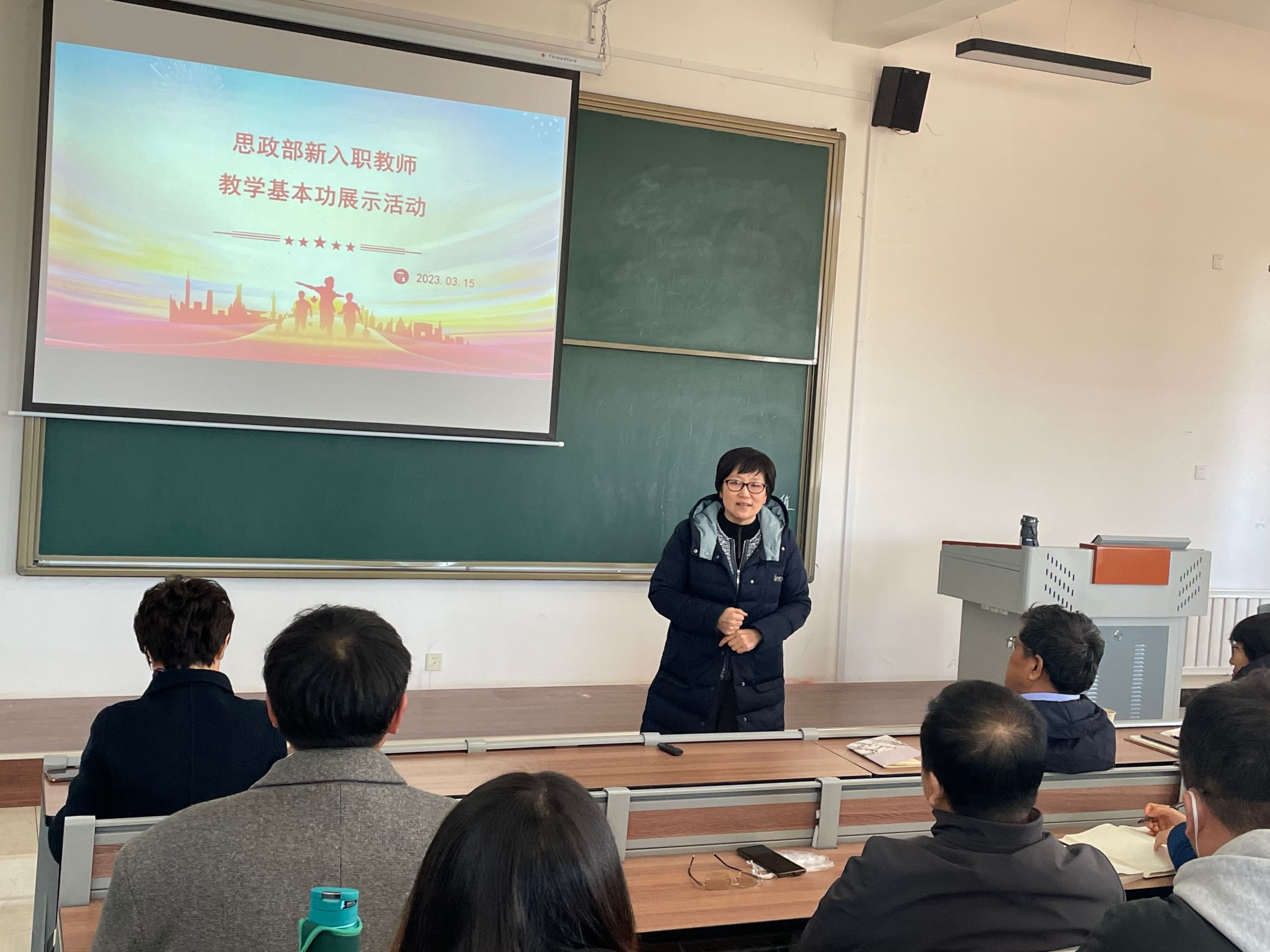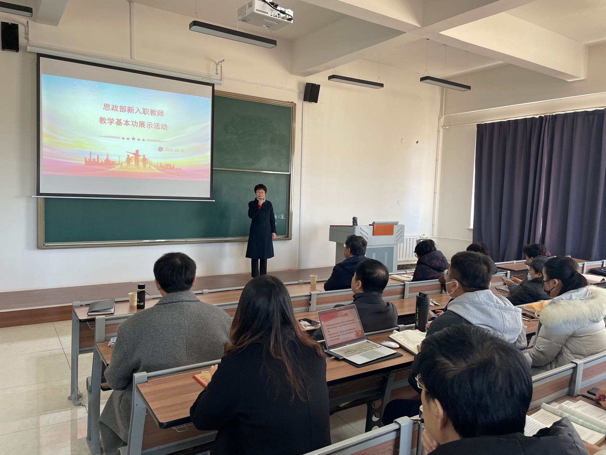 2023年3月15日,思政部在厚德楼105室举办青年教师教学基本功展示活动。活动以提高青年教师职业素养和业务水平,加速青年教师的专业成长,促进提升教学质量,打造一支教学基本功扎实,综合素质高的思政教师队伍为目的,为青年教师搭建展示功底、促进学习的平台。教务处刘桂萍处长、教师发展中心梅显懋主任应邀出席活动,并对青年教师进行现场指导。思政部全体教师参加活动。