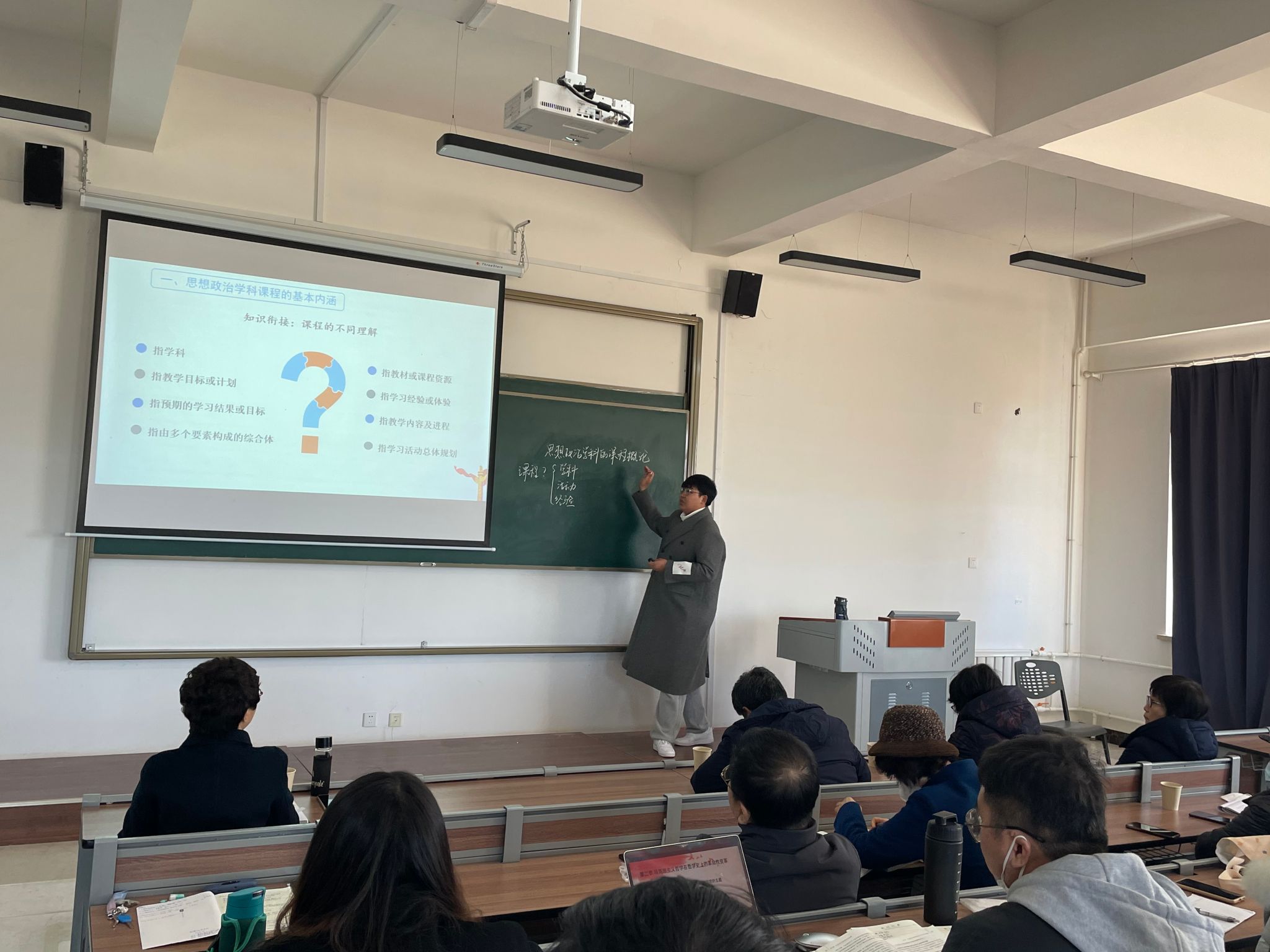 思想政治教育专业带头人师吉金教授做了全面而深刻的点评。他在点评中指出,此次活动展现了青年思政课教师的风采,参加活动的思政教师教态自然、语言规范、授课内容丰富、完整、课程比较鲜活,利用各种教学方法,很好地联系实际,教学比较有深度。同时,对青年教师提出八点期望:第一,授课内容之间的联系还可以更加密切;第二,要注意多媒体与板书之间的联系,多媒体教学中板书起辅助作用;第三,授课内容要精练,避免多而浅;第四,授课过程中要避免出现口误;第五,要加强授课内容的深度;第六,要注意课程性质与功能之间的联系;第七,要深度解析教材,授课内容要符合教材要求;第八,要注意授课过程中表述的准确定。